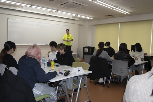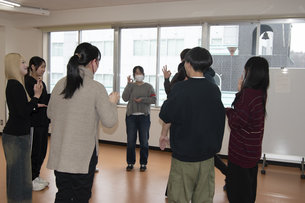 2月27日(金)、学内で学友会各機関の代表および副代表学生を対象に、「学友会リーダー研修会」を実施しました。NPO法人宮城県レクリエーション協会 チームレクリエーション事務局長の佐藤聡明先生をお招きし、「リーダーとは」について話し合い、その後、レクリエーションを行いました。レクリエーションでは、グループに分かれ「ドジョウ掴み」や「お地蔵さんゲーム」等を行い、学生同士の距離感も縮まり、打ち解けあった雰囲気になりました。